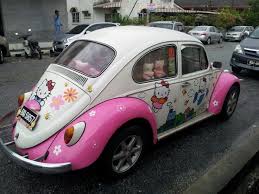 Ternyata Hello Kitty memang punya daya tarik tersendiri sehingga para fans nya rela menjadikan mobil bergaya karakter kartun ini, simak fotonya di bawah ini :