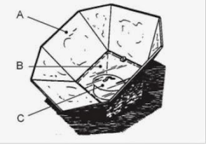 Delapan buah cermin (A) membentuk reflektor octagon. Sinar matahari diarahkan ke dalam kotak (B) yang terbuat dari kayu yang diatasnya ditutup dengan kaca. Didalam kotak terdapat panci (C). Temperatur di dalam kotak B dapat mencapai suhu 200 derajat celsius.