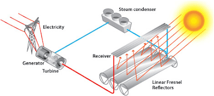 Pembangkit lensa cekung berpangku pada sistem konsentrasi linier (Linear concentrating solar power/CSP) untuk menghasilkan listrik. Ada dua teknologi dalam pembangkitan lensa cekung, yaitu sistem pengumpul parabola (parabolic trough system) dan sistem reflektor fresnel linier (linear fresnel reflector system). Untuk pembangkitan listrik menggunakan mesin uap biasa. Satu sistem besar bisa menghasilkan listrik 50-250 MW.