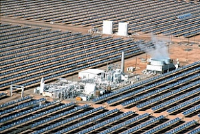Dunia telah membangun berbagai pembangkit Pembangkit Listrik Tenaga Surya (PLTS). Pembangkitan listrik dilakukan dengan panel surya penerima panas (solar thermal) dan panel fotovoltaik. Ada berbagai teknologi yang digunakan untuk membangkitkan listik menggunakan panel surya penerima panas, diantaranya, pembangkit menara (power tower) berbasis turbin uap, pembangkit menara berbasis turbin udara (solar updraft), pembangkit parabola, dan pembangkit lensa cekung.Salah satu keunggulan PLTS dengan panel thermal adalah daya yang dihasilkan bisa sangat besar, mencapai ratusan MW. Salah satu power tower di Amerika bisa berkapasitas 700 MW. PLTS berbasis panel thermal juga dibangun dilahan yang tidak produktif atau yang sulit ditanami tanaman pangan dan industri karena lahannya yang ekstrim. Lahan yang cocok adalah sahara atau padang pasir yang banyak terdapat di Amerika, Australia, Afrika, dan Timur Tengah. Salah satu kendala ada pada teknologi berbasis turbin uap karena membutuhkan air yang cukup banyak untuk menghasilkan uap, padahal lokasi pembangunannya di tempat ekstrim yang mana air merupakan barang yang sangat berharga. Namun, kendala ini sekarang bisa diatasi dengan teknologi turbin berbasis gas dan aliran udara keatas (solar updraft).